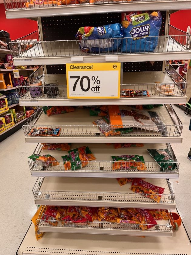I stopped by Target today to check their clearance section and they had a lot of their Halloween candy and baking items marked down 70% and then costumes and other items were marked down 90% off!
